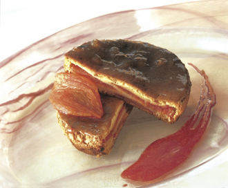 Pendant ce temps préparez la crème : travaillez ensemble le beurre fondu avec le sucre puis ajoutez l'oeuf. Recouvrez le biscuit à la tomate de crème et remettez au four pendant 15 minutes. Laissez tiédir puis nappez de confit de fleurs de jasmin.