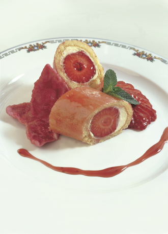 Gelée de sauternes, mousse de chocolat blanc à la fleur de jasmin